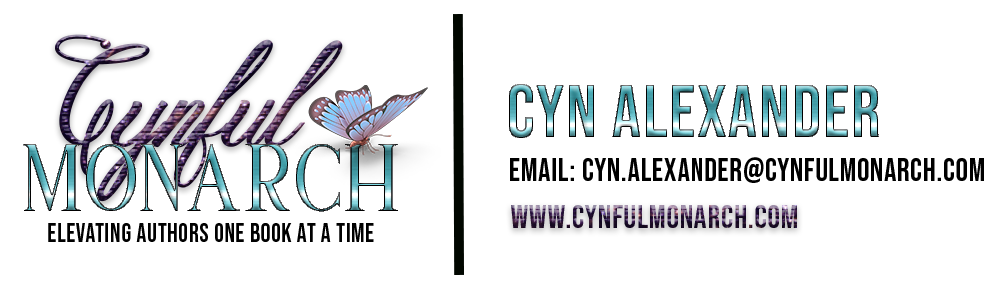 CA: “Cynful Monarch really stemmed from the knowledge I gained both in the industry as well as in school. I finished my bachelor’s degree in creative writing with a focus in fiction and decided to write my first book. From there, I was emerged into the industry and soaked up all the knowledge. It wasn’t long before I realized there were so many things I could do within the industry that I loved and could make a career out of aside from writing books, so I took a stab at it. Cynful Monarch truly started with formatting books. That is honestly my first love (service-wise) and it is still my favorite service I offer. To take a simple Word doc and turn it into something beautiful is so satisfying. From there, I dabbled in a lot of other things until Cynful Monarch was born, and I zeroed in on the skills I was truly good at and got rid of the rest (like creating covers – I leave that to the true designers – lol!). Now, I edit, typeset, mentor, and coach for other authors… with some new services coming very soon!”
